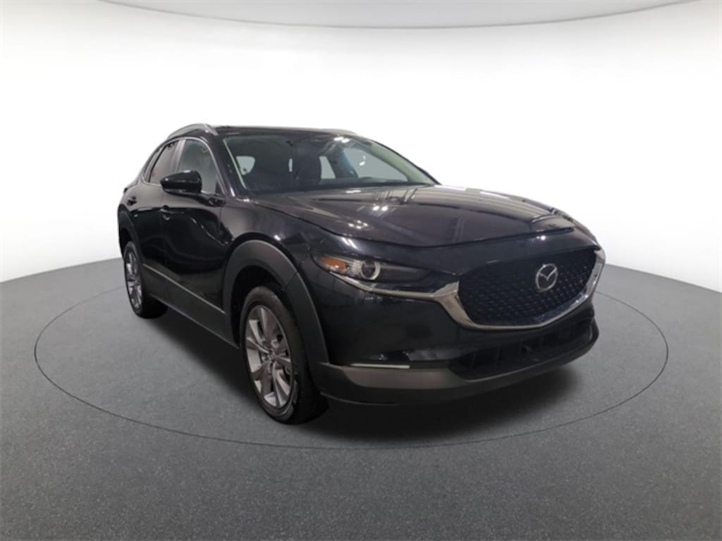 Balance of Factory Warranty, 4-Wheel Disc Brakes, 6 Speakers, ABS brakes, Air Conditioning, Alloy wheels, AM/FM radio, AppLink/Apple CarPlay and Android Auto, Auto High-beam Headlights, Automatic temperature control, Brake assist, Bumpers: body-color, Compass, Delay-off headlights, Driver door bin, Driver vanity mirror, Dual front impact airbags, Dual front side impact airbags, Electronic Stability Control, Emergency communication system: Mazda Connected Services (3-year trial subscription included), Exterior Parking Camera Rear, Front anti-roll bar, Front Bucket Seats, Front Center Armrest, Front dual zone A/C, Front reading lights, Front wheel independent suspension, Fully automatic headlights, Heated door mirrors, Heated Front Bucket Seats, Heated front seats, Illuminated entry, Knee airbag, Leather Shift Knob, Leather steering wheel, Leatherette Seat Trim, Low tire pressure warning, MAZDA CONNECT Infotainment System, Memory seat, Occupant sensing airbag, Outside temperature display, Overhead airbag, Overhead console, Panic alarm, Passenger door bin, Passenger vanity mirror, Power door mirrors, Power driver seat, Power moonroof, Power steering, Power windows, Radio data system, Radio: AM/FM Audio System, Rain sensing wipers, Rear seat center armrest, Rear side impact airbag, Rear window defroster, Rear window wiper, Remote keyless entry, Speed control, Speed-sensing steering, Split folding rear seat, Spoiler, Steering wheel mounted audio controls, Tachometer, Telescoping steering wheel, Tilt steering wheel, Traction control, Trip computer, Turn signal indicator mirrors, Variably intermittent wipers, and Wheels: 18" x 7J Aluminum Alloy.